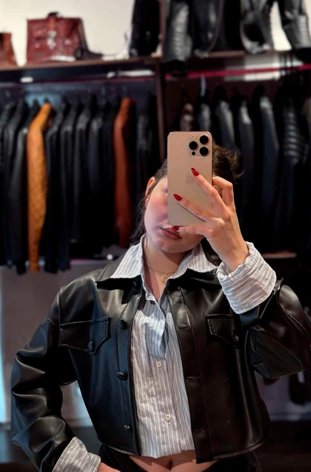 La Camisa Crop Cuero Ecológico es una prenda moderna y funcional, diseñada para quienes buscan estilo y comodidad. Confeccionada en cuero ecológico, su corte crop resalta la figura, mientras que los prácticos bolsillos aportan un toque distintivo y funcional. Ideal para un look urbano y sustentable, esta camisa combina tendencia y responsabilidad ambiental en cada detalle. Perfecta para renovar tu guardarropa con una prenda versátil y consciente.